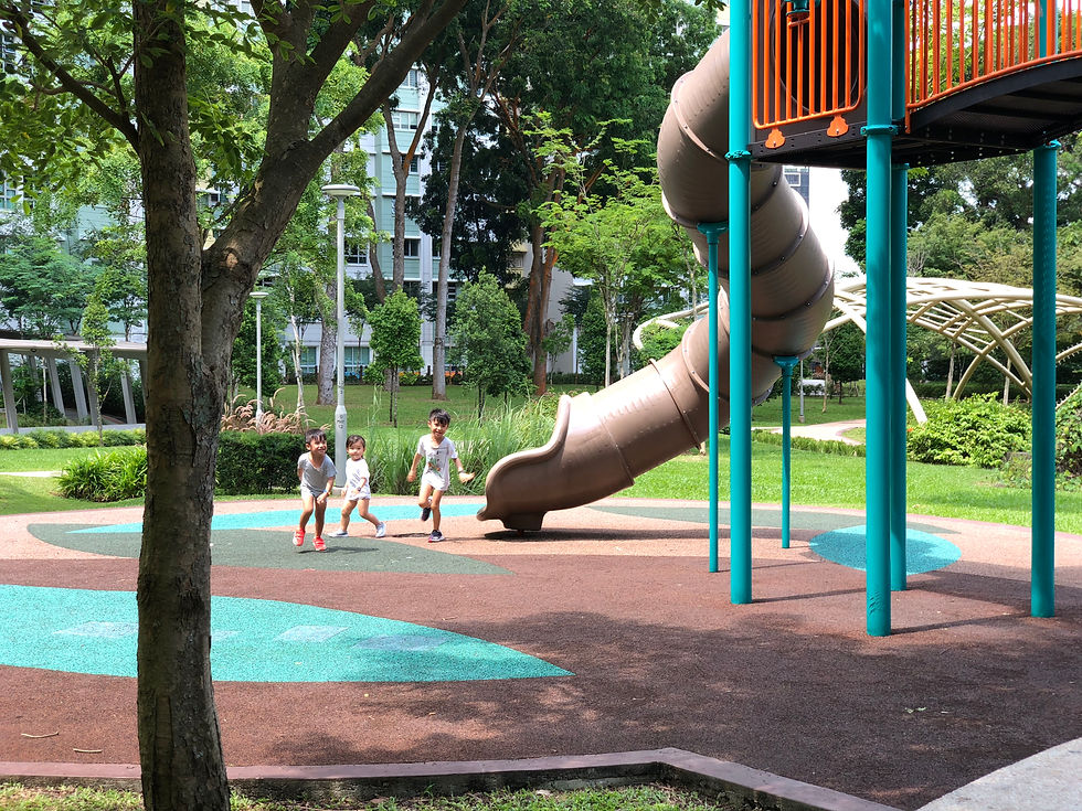 This playground is a gem in our area. The playground covers a sprawling area, decent climbs with a spiral slide. We only covered 1/2 of it. It's one of the better playgrounds in SG and compatible to those in SF and Australia. We will be back again, for sure.