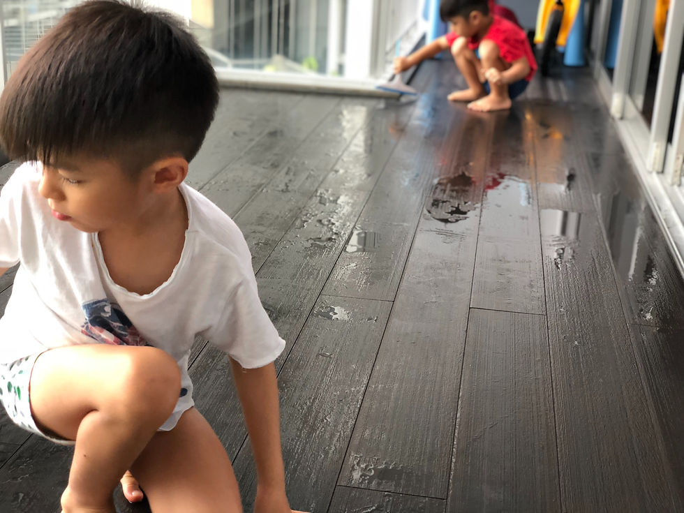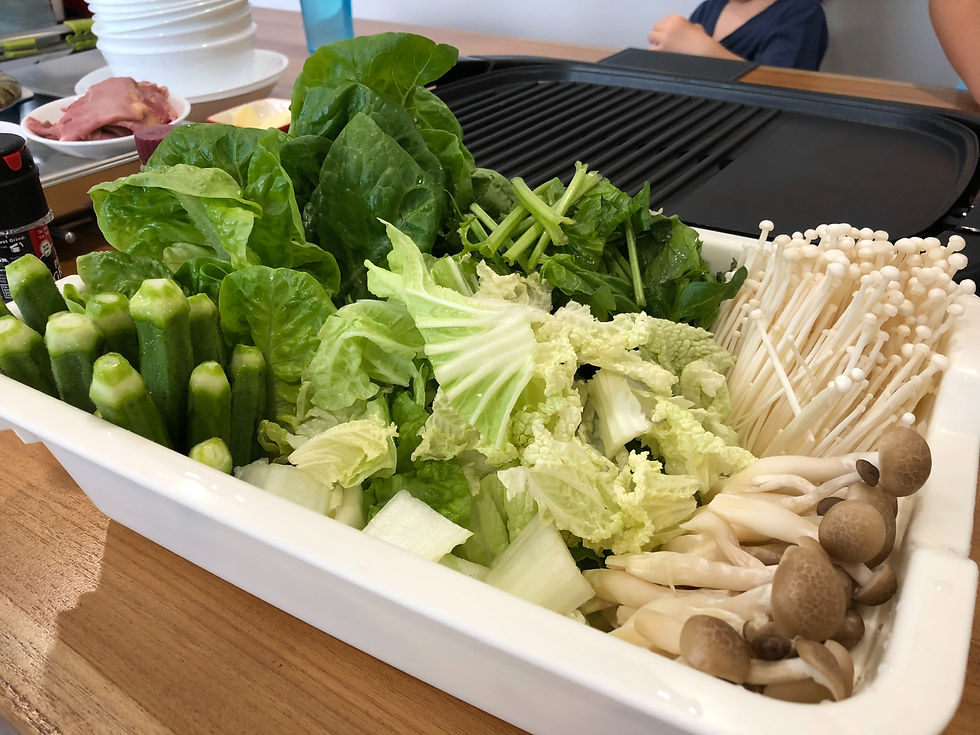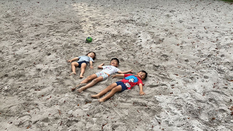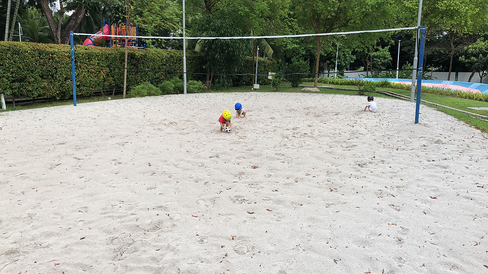 We spent the whole day at home. I got the kids to wash the balcony, then we headed to the beach volleyball court and swam in the sea of sand. Dinner was steamboat and teppanyaki. It was an awesome day.