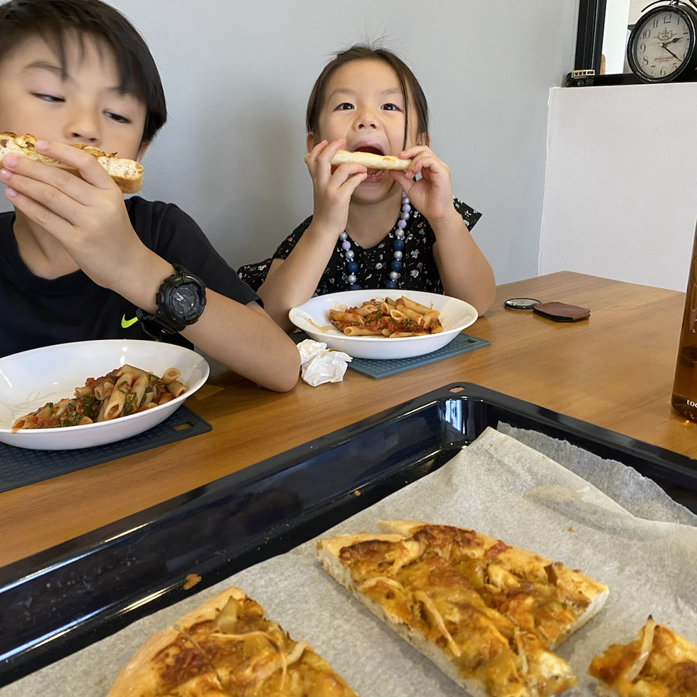 It is the little glutton’s birthday. How else to better celebrate than to have a feast! Mum made pizza for lunch.